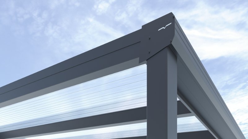 Für die Eindeckung gibt es verschiedene Optionen, je nach Bedarf kann zwischen Verbundsicherheitsglas und Polycarbonat gewählt werden.
